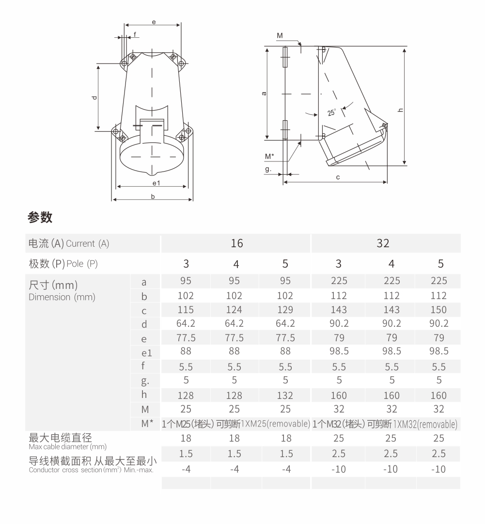 Wall Mounted Socket 32A/5P-1557 IP44 400V