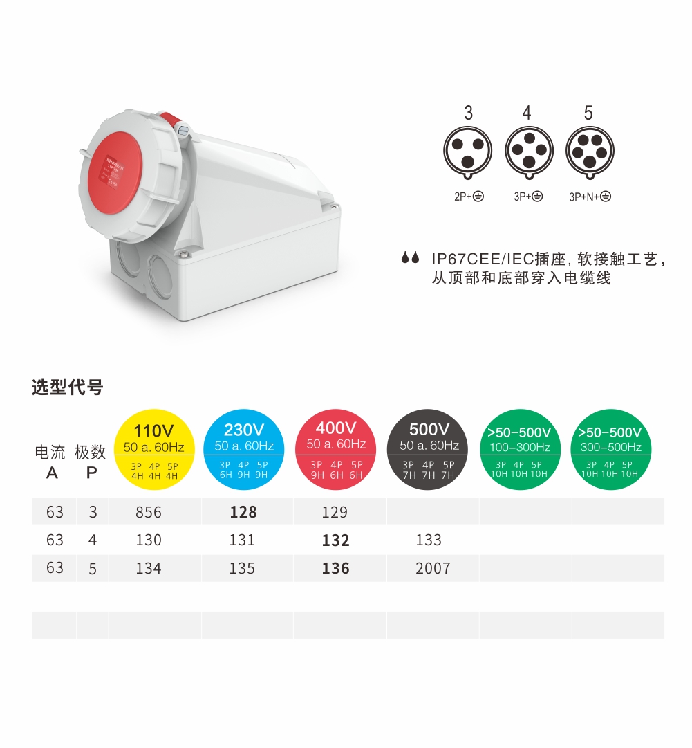 Wall Mounted Socket 63A/5P-136 IP67 400V