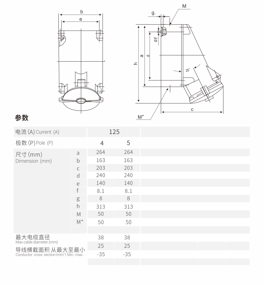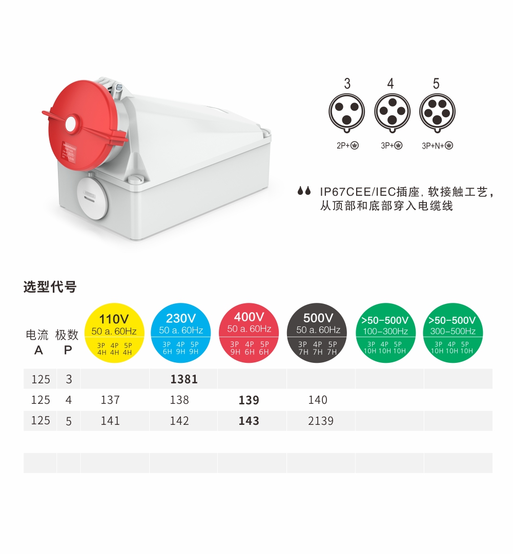 Wall Mounted Socket 125A/5P-143 IP67 400V