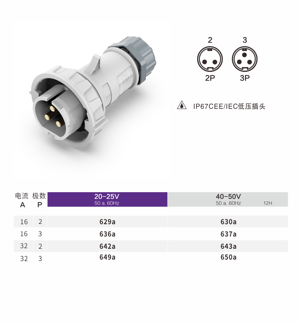 Low Voltage Plug 32A/3P-650a IP67 40V-50V