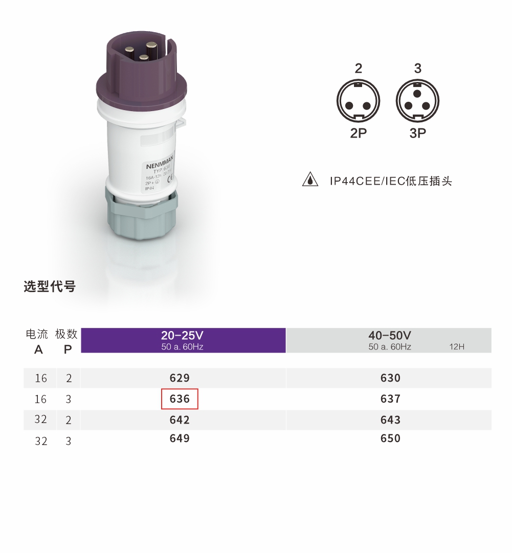Low Voltage Plug 16A/3P-636 IP44 20V-25V