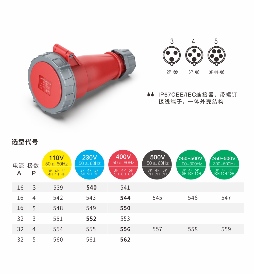 連接器 16A/5P-550 IP67 400V