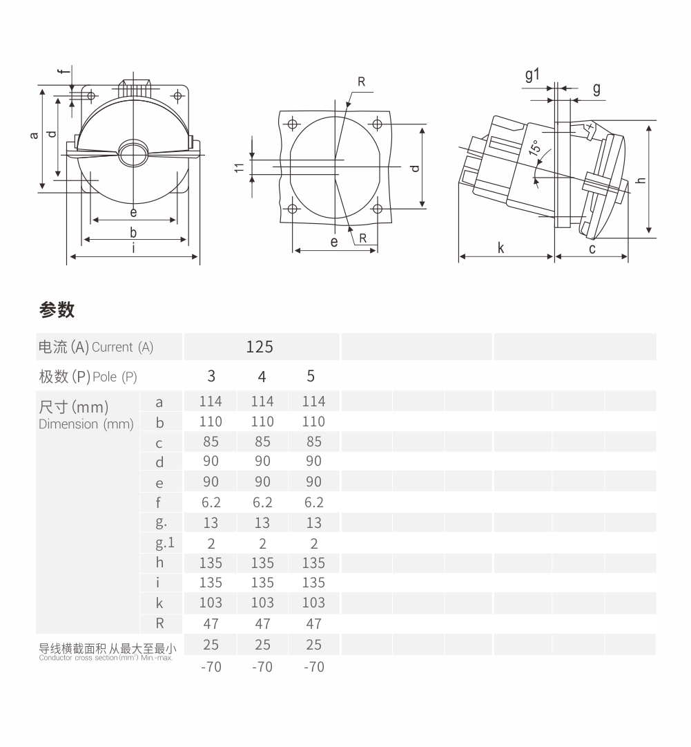 附加插座 125A/3P-3575 IP67 230V 斜插式