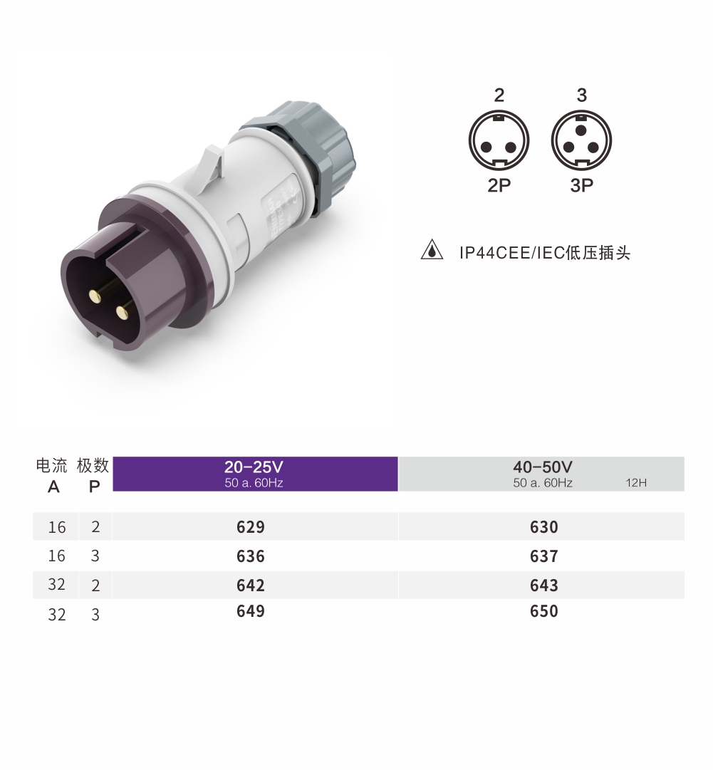 低壓插頭 16A/2P-629 IP44 20V-25V