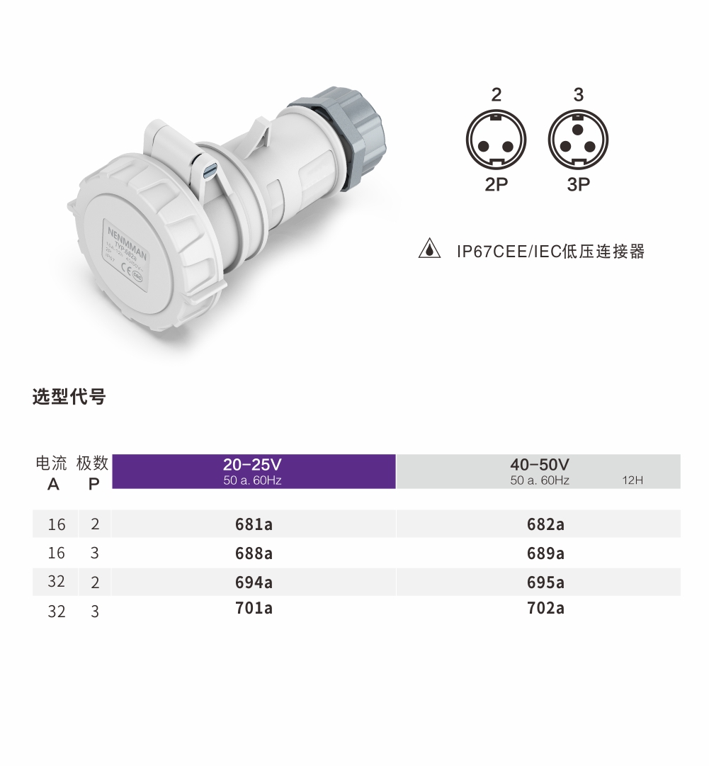 低壓連接器 16A/2P-682a IP67 40V-50V