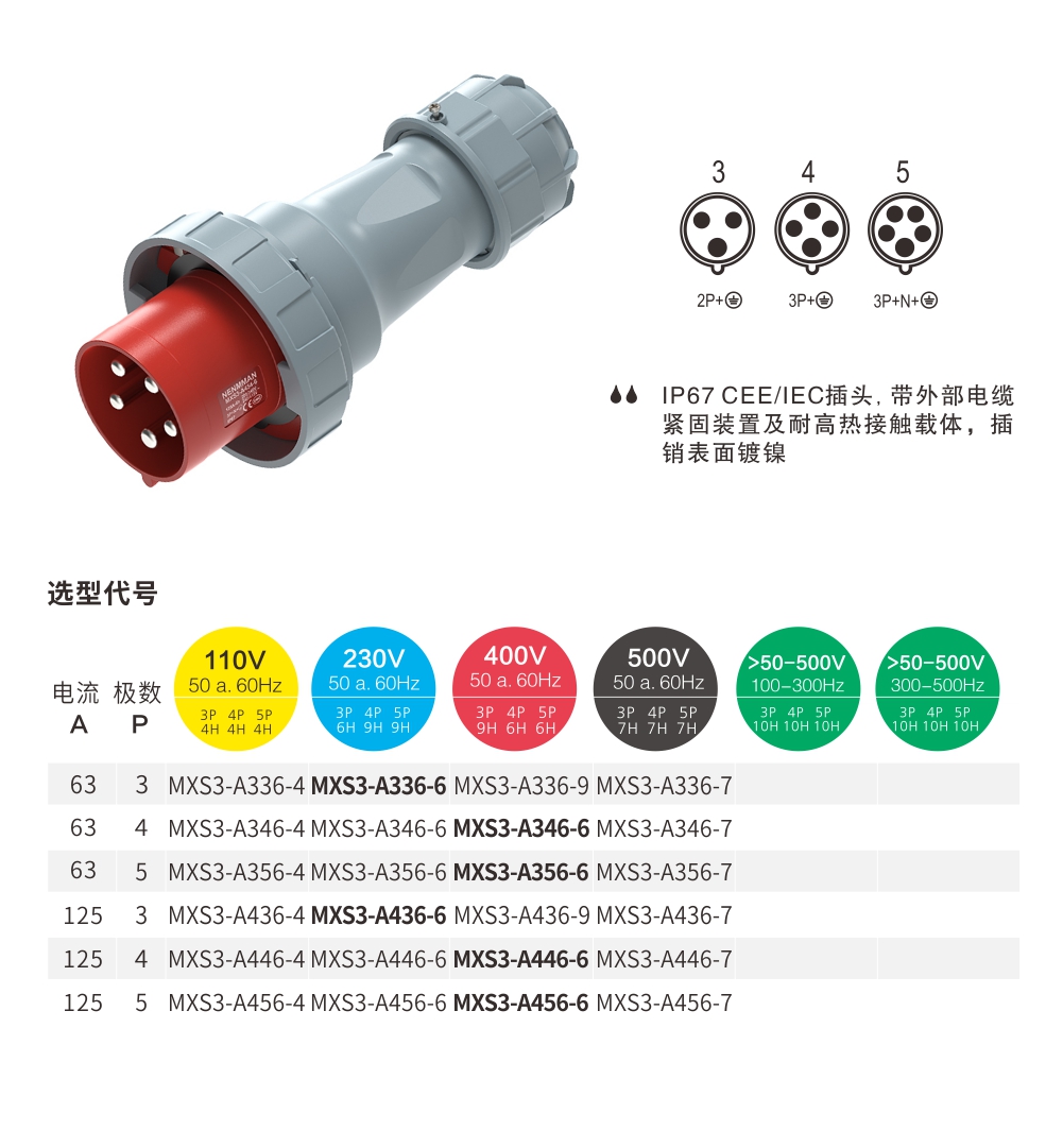 和諧系列插頭 125A/5P-MXS3-A456-6 IP67 400V