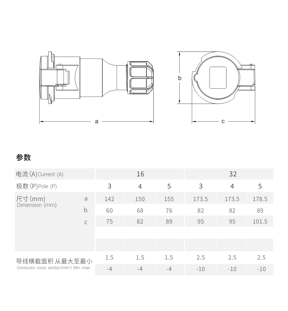 和諧系列連接器 16A/5P-MXS3-C154-6 IP44 400V