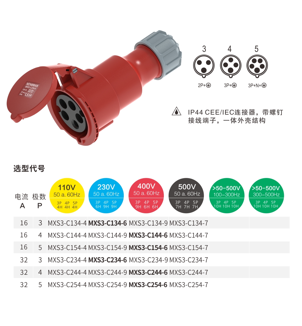 和諧系列連接器 32A/5P-MXS3-C254-6 IP44 400V