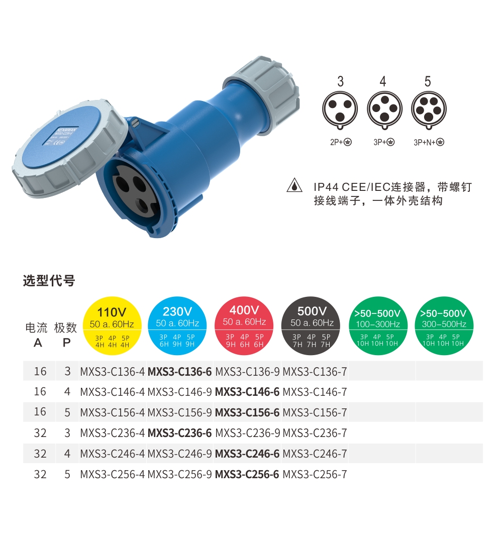 和諧系列連接器 32A/3P-MXS3-C236-6 IP67 230V
