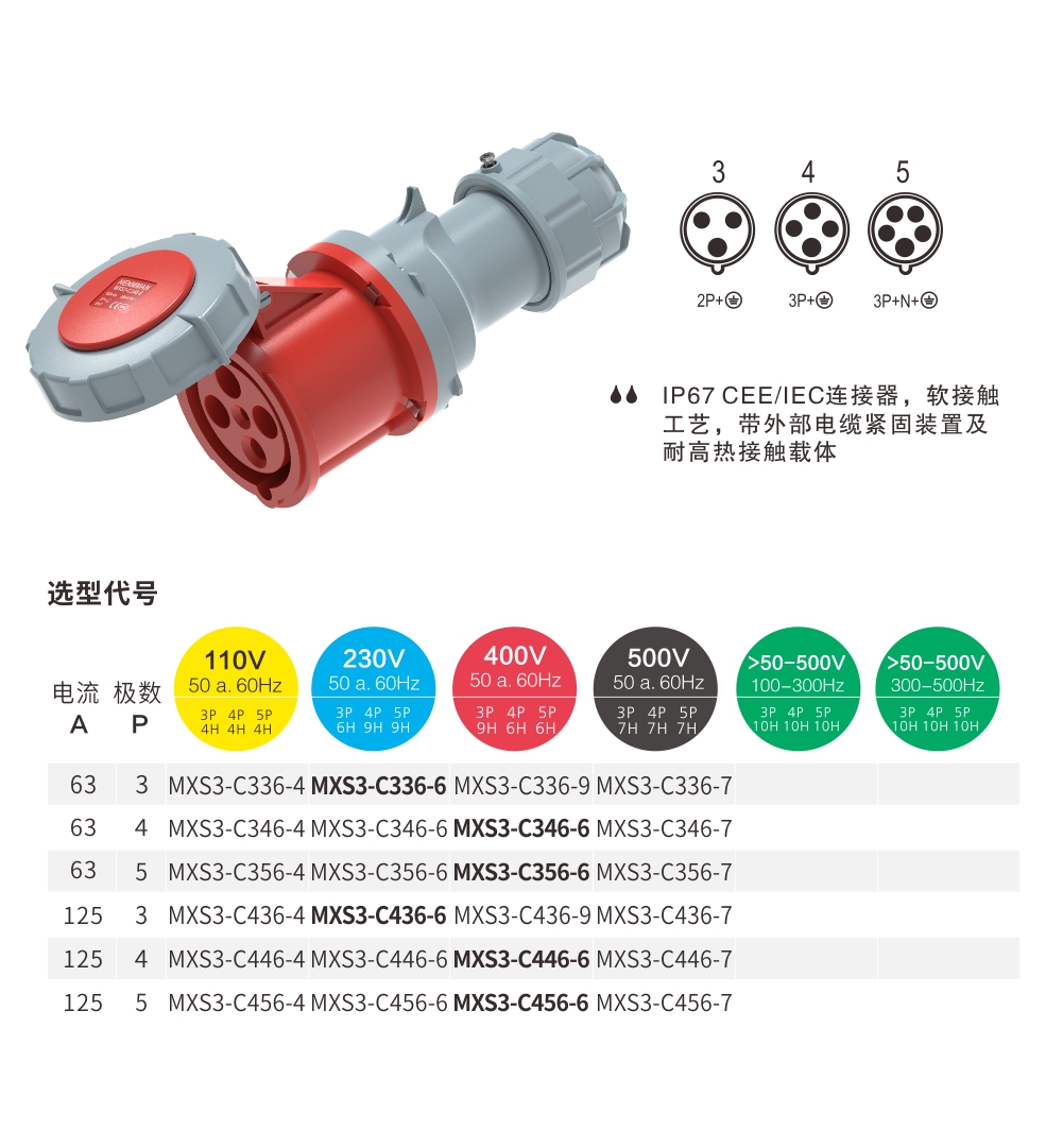 和諧系列連接器 63A/4P-MXS3-C346-6 IP67 400V