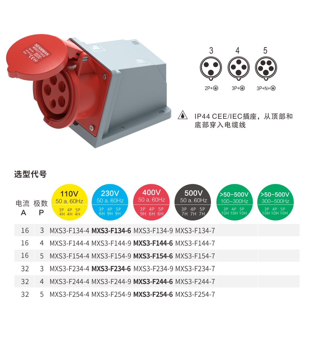 和諧系列插座 32A/5P-MXS3-F254-6 IP44 400V