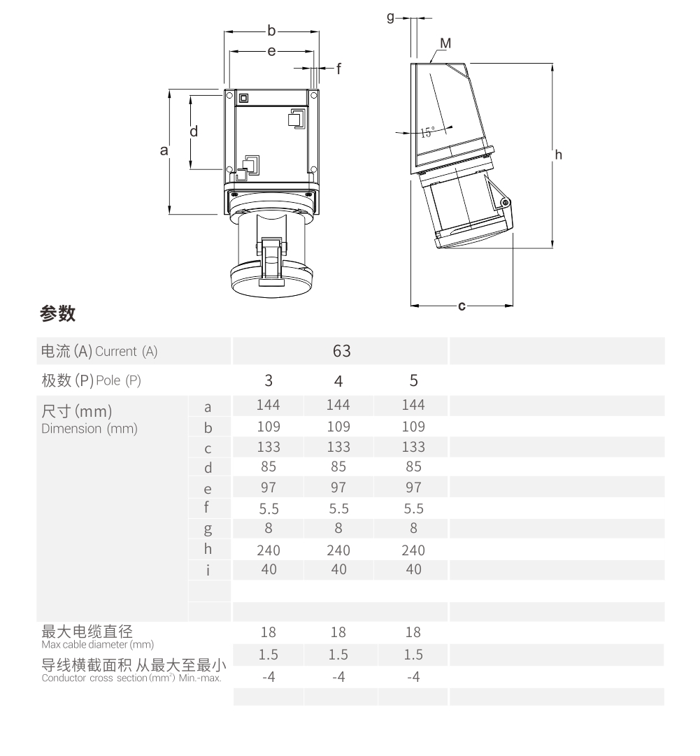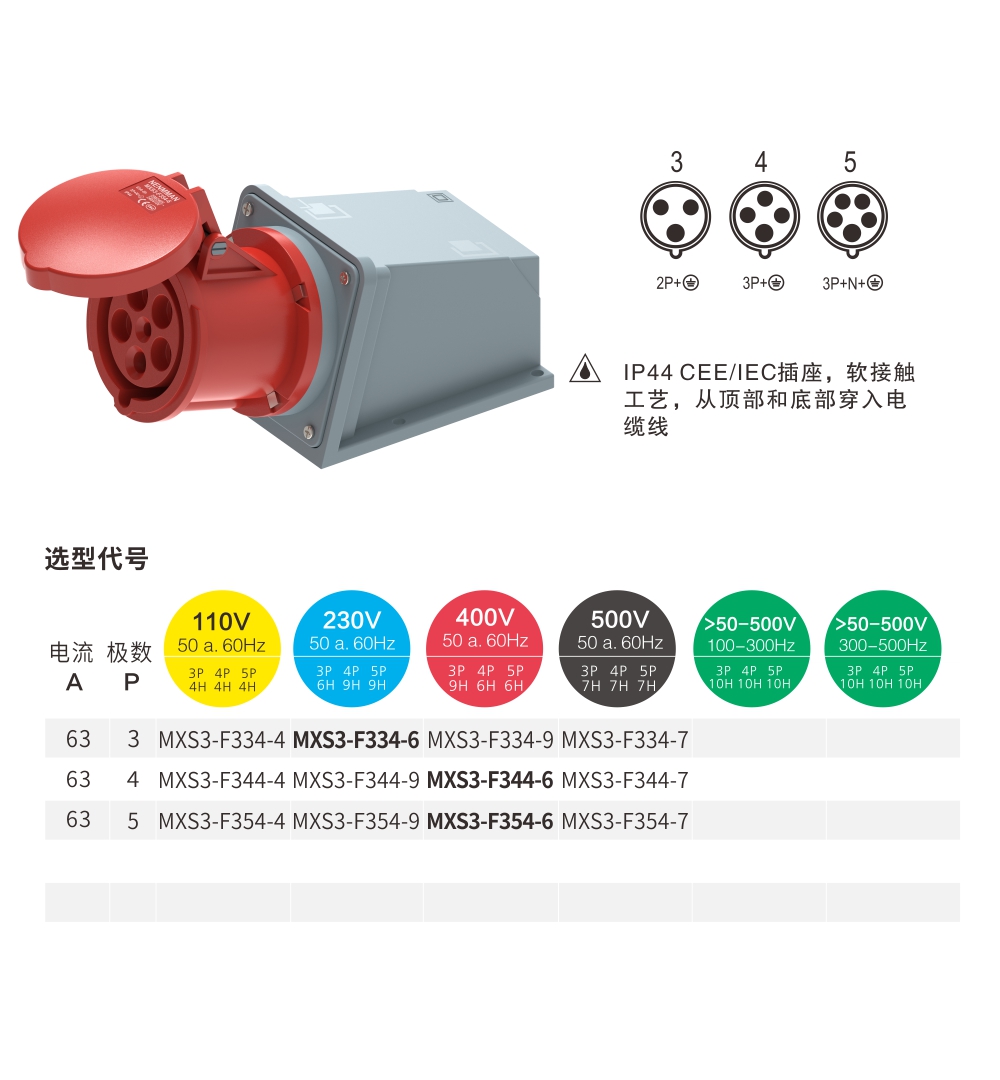 和諧系列插座 63A/5P-MXS3-F354-6 IP44 400V