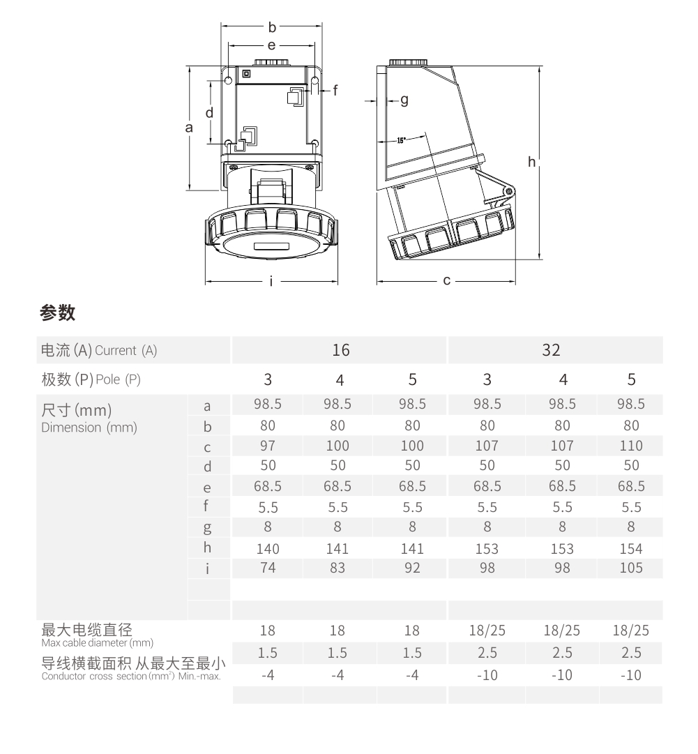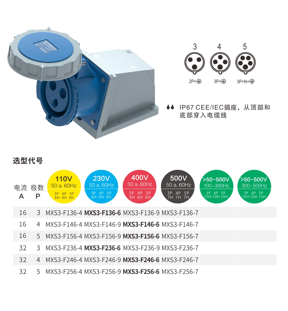 和諧系列插座 32A/3P-MXS3-F236-6 IP67 230V