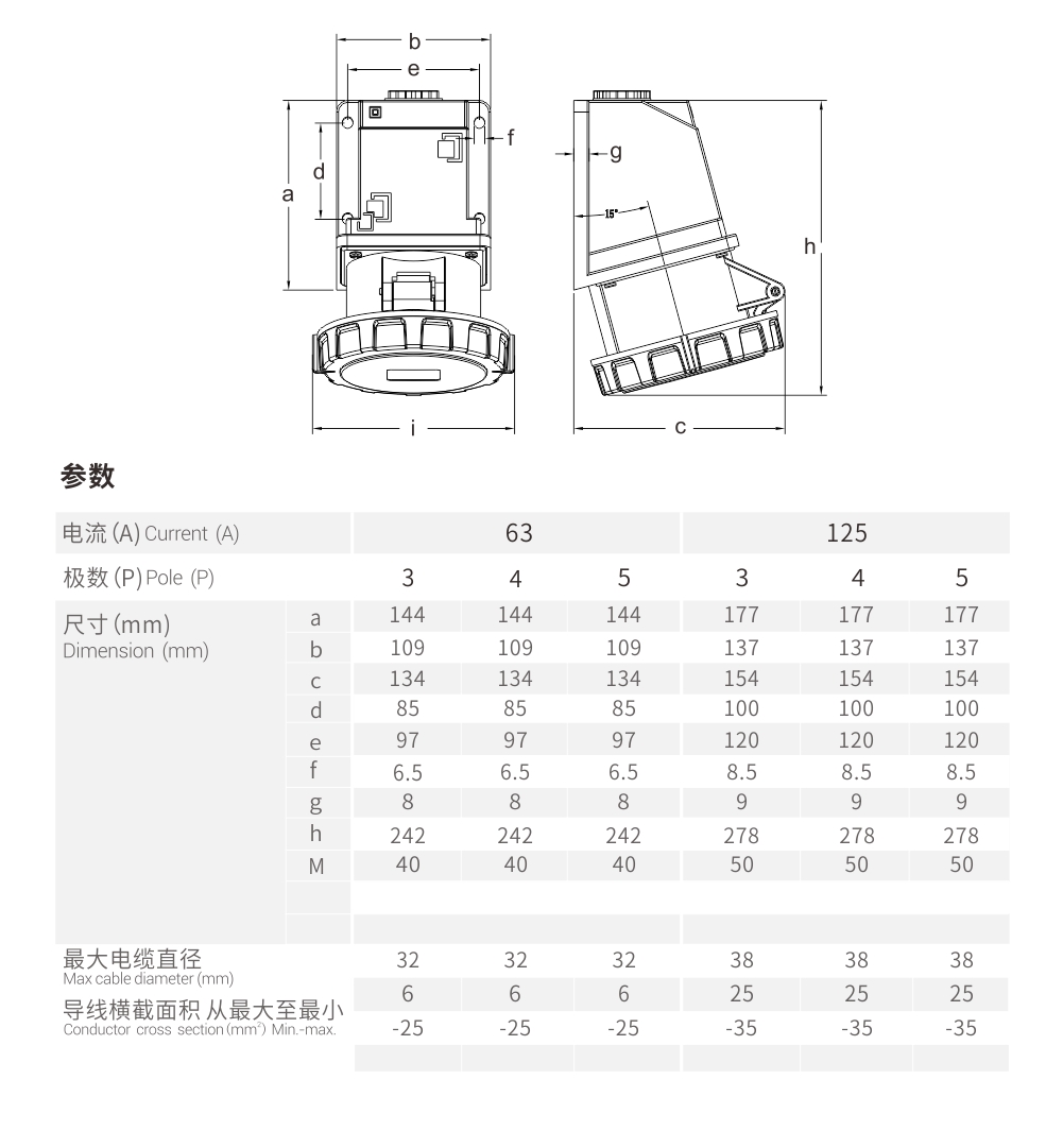 和諧系列插座 125A/5P-MXS3-F456-6 IP67 400V
