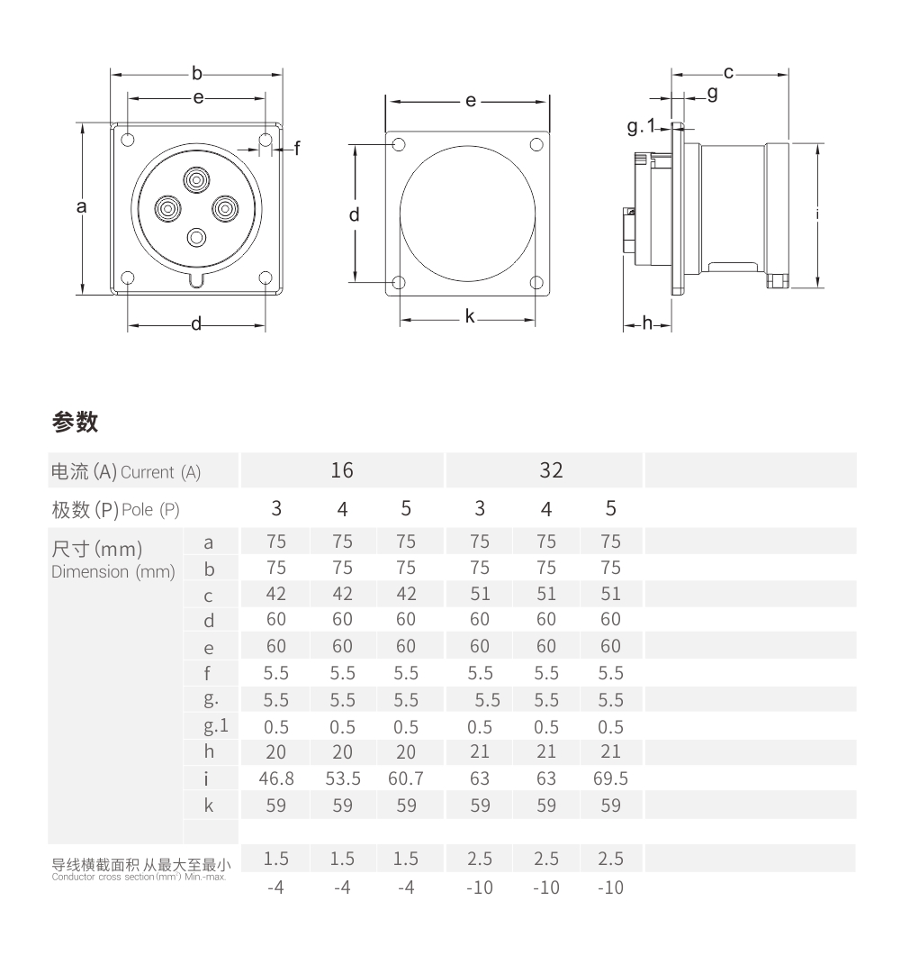 和諧系列附加裝置插頭 32A/5P-MXS3-E254-6 IP44 400V