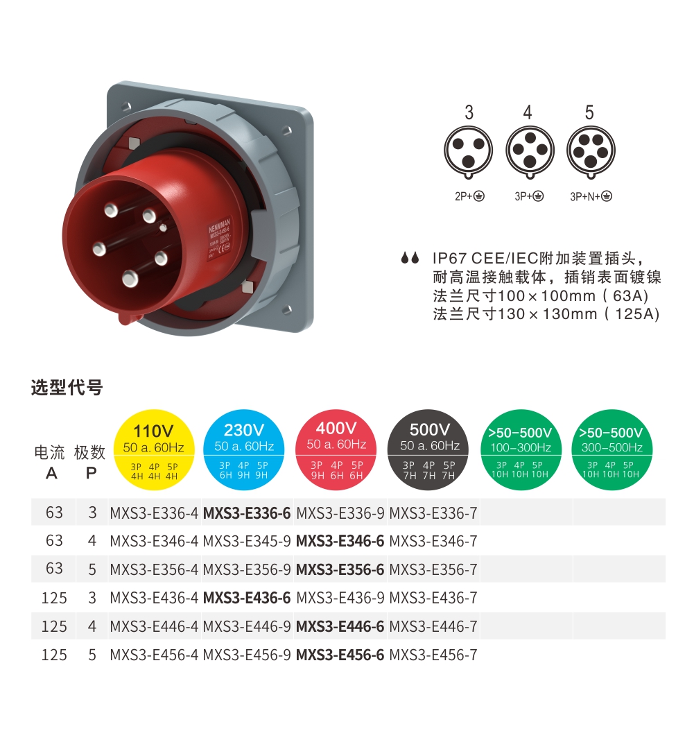 和諧系列附加裝置插頭 125A/5P-MXS3-E456-6 IP67 400V