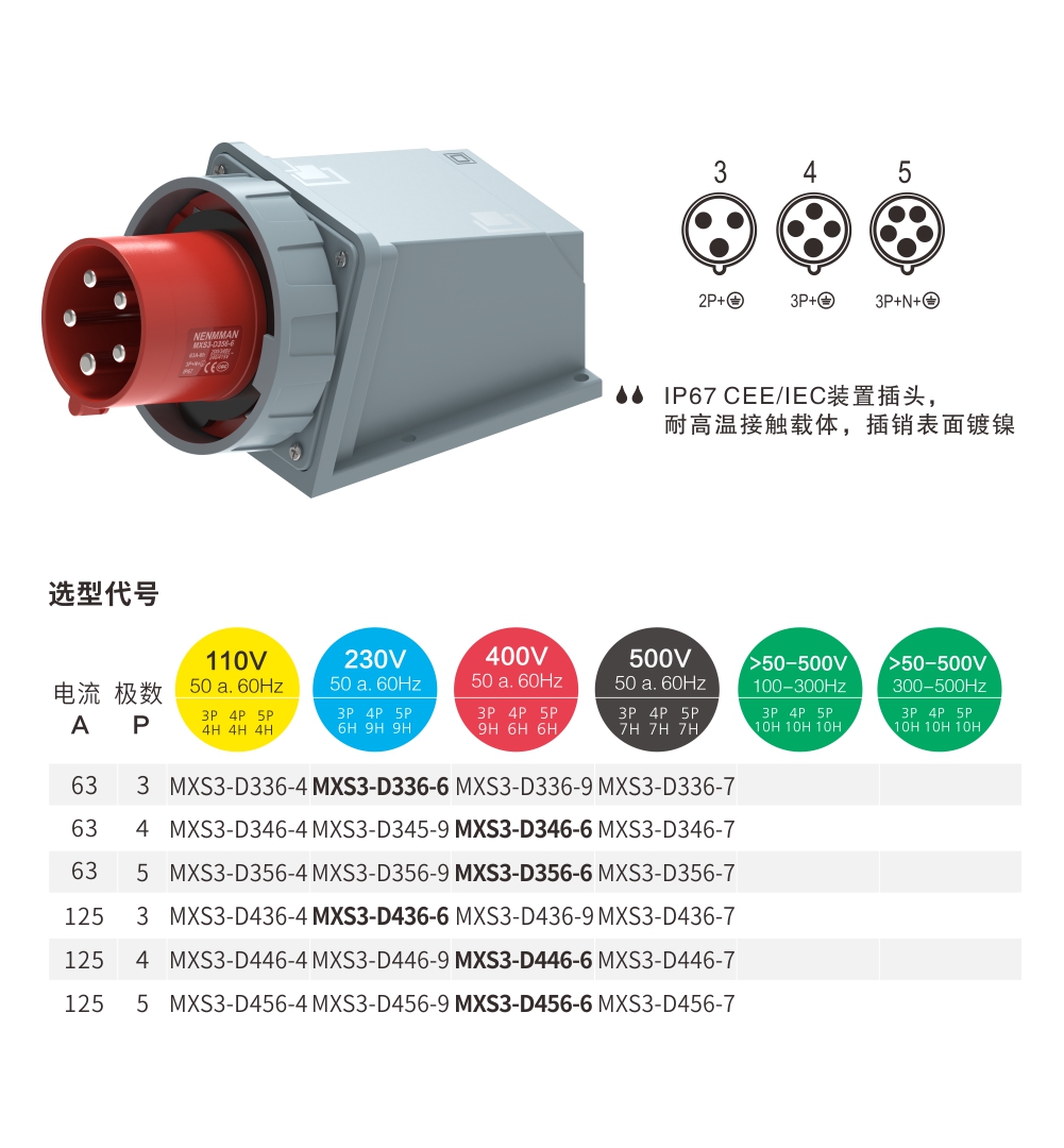 和諧系列裝置插頭 63A/5P-MXS3-D356-6 IP67 400V