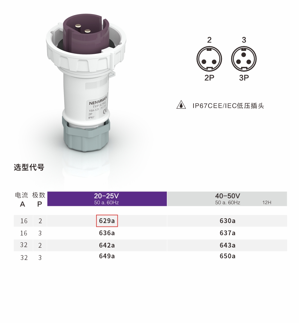 低壓插頭 16A/2P-629a IP67 20V-25V