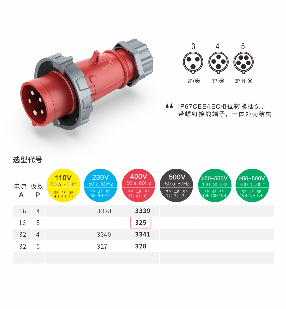 插頭 16A/5P-325 IP67 400V 相位轉(zhuǎn)換