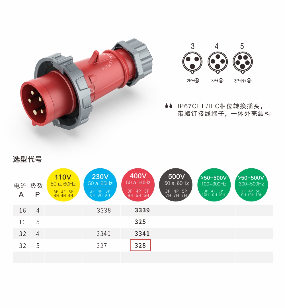 插頭 32A/5P-328 IP67 400V 相位轉(zhuǎn)換