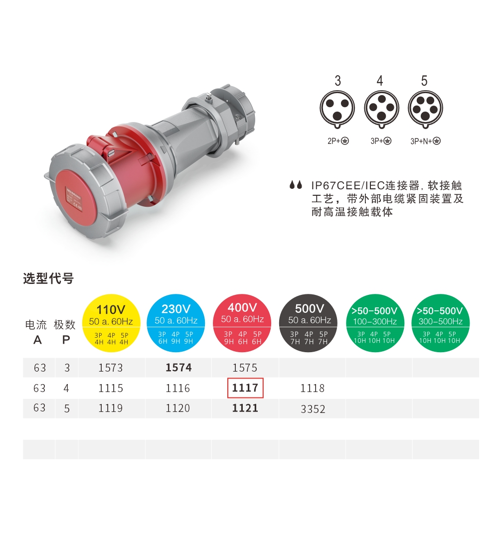 連接器 63A/4P-1117 IP67 400V