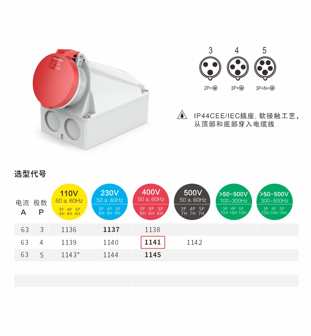 插座 63A/4P-1141 IP44 400V