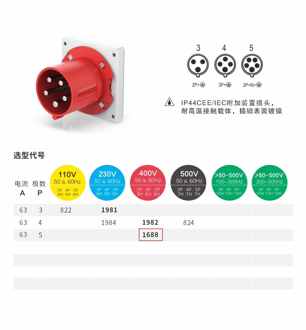 附加裝置插頭 63A/5P-1688 IP44 400V