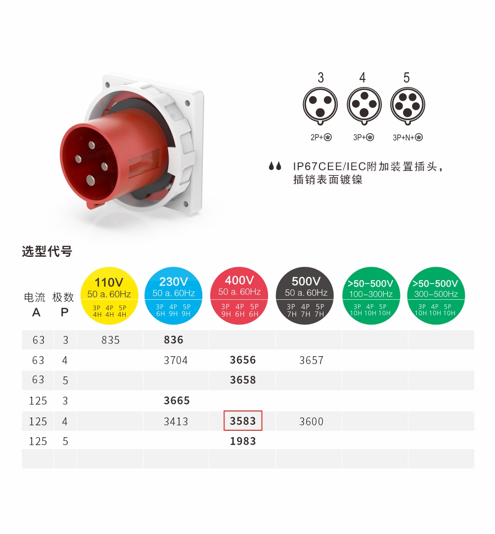 附加裝置插頭 125A/4P-3583 IP67 400V