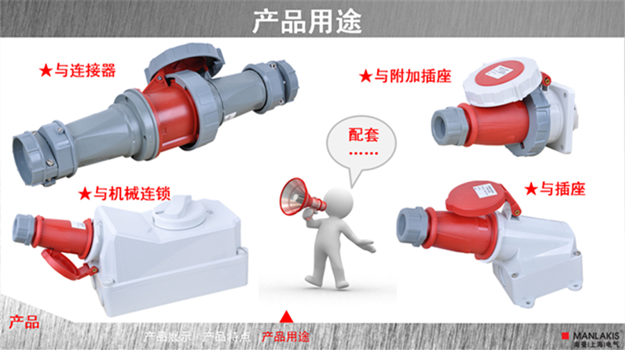 產(chǎn)品采用GB/T 11918~11919-2001標準,它又等同于IEC 60309-1/2標準,完全與國際接軌。因此,這類產(chǎn)品在國內(nèi)和國際都通用。同時,其規(guī)格種類多,可以滿足各種場合和用途。
